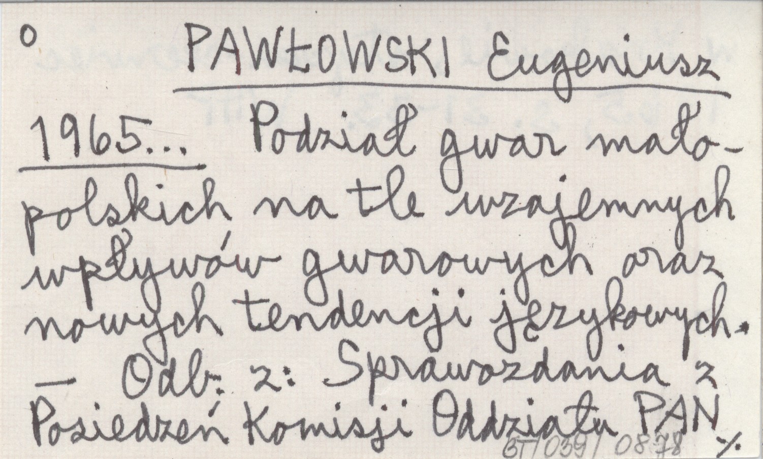 PAWŁOWSKI Eugeniusz 1965... Podział gwar małopolskich na tle wzajemnych wpływów gwarowych oraz nowych tendencji językowych.