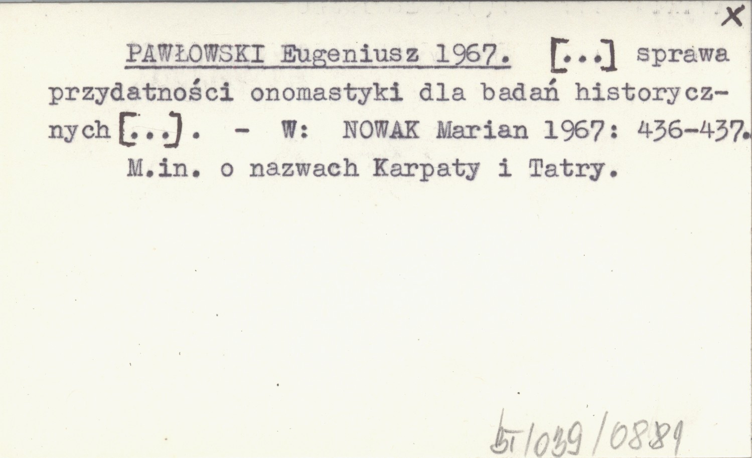 PAWŁOWSKI Eugeniusz 1967 [...] sprawa przydatności onomastyki dla badań historycznych [...].