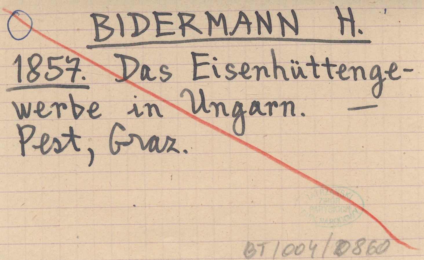 BIDERMANN H. 1857 Das Eisenhüttengewerbe in Ungarn.