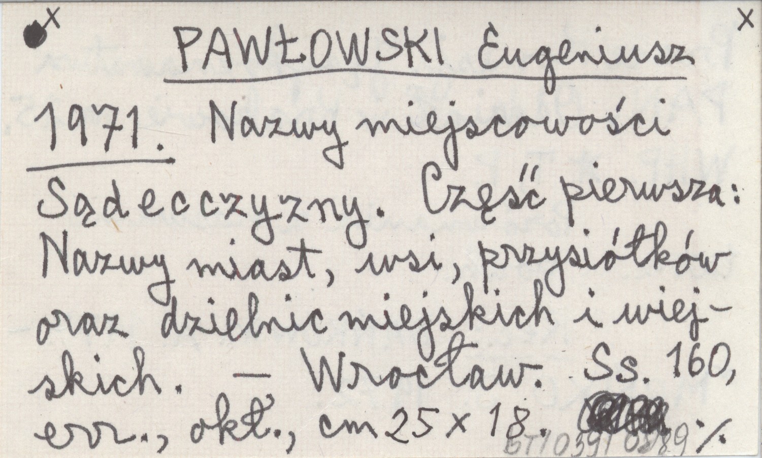 PAWŁOWSKI Eugeniusz 1971 Nazwy miejscowości Sądecczyzny. Część pierwsza: Nazwy miast, wsi, przysiółków oraz dzielnic miejskich i wiejskich.