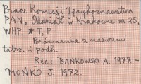 Prace Komisji Językoznawstwa PAN, Oddział w Krakowie (Wrocław) , Nr 25, 160 s., err., okł., 25x18 cm. Porównanie z nazwami tatrzańskimi i podhalańskimi. REC: BAŃKOWSKI A. 1977 ; MOŃKO J. 1972 ;