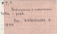 Prace Komisji Językoznawstwa Oddziału w Krakowie PAN (Wrocław) , Nr 39, 140 s., okł., 25x18 cm. Porównanie z nazwami tatrzańskimi i podhalańskimi. REC: BAŃKOWSKI A. 1977