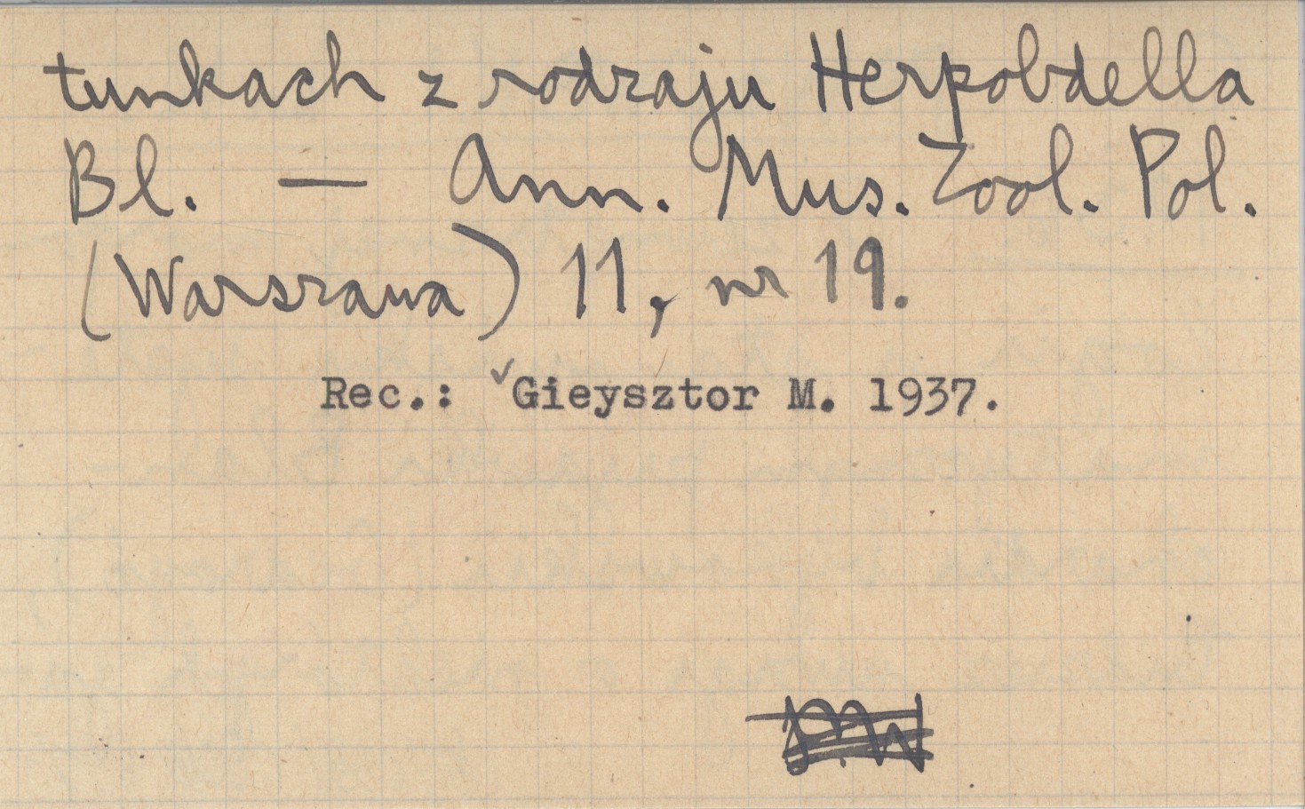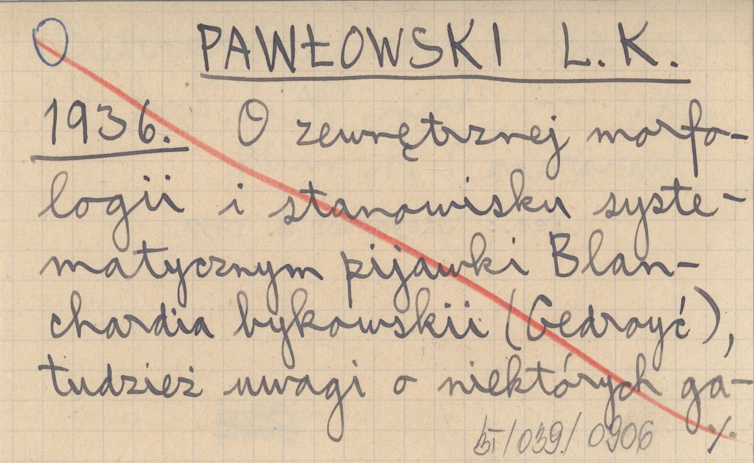 PAWŁOWSKI L. K. 1936 O zewnętrznej morfologii i stanowisku systematycznym pijawki Blanchardia bykowskii (Gedroyć), tudzież uwagi o niektórych gatunkach z rodzaju Herpobdella Bl.