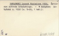 PAWŁOWSKI Leszek Kazimierz 1952 Życiorys Alfreda Lityńskiego.