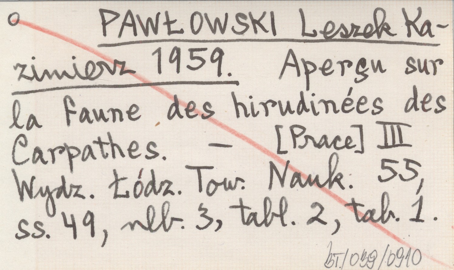 PAWŁOWSKI Leszek Kazimierz 1959 Aperçu sur la faune des hirudinées des Carpathes.