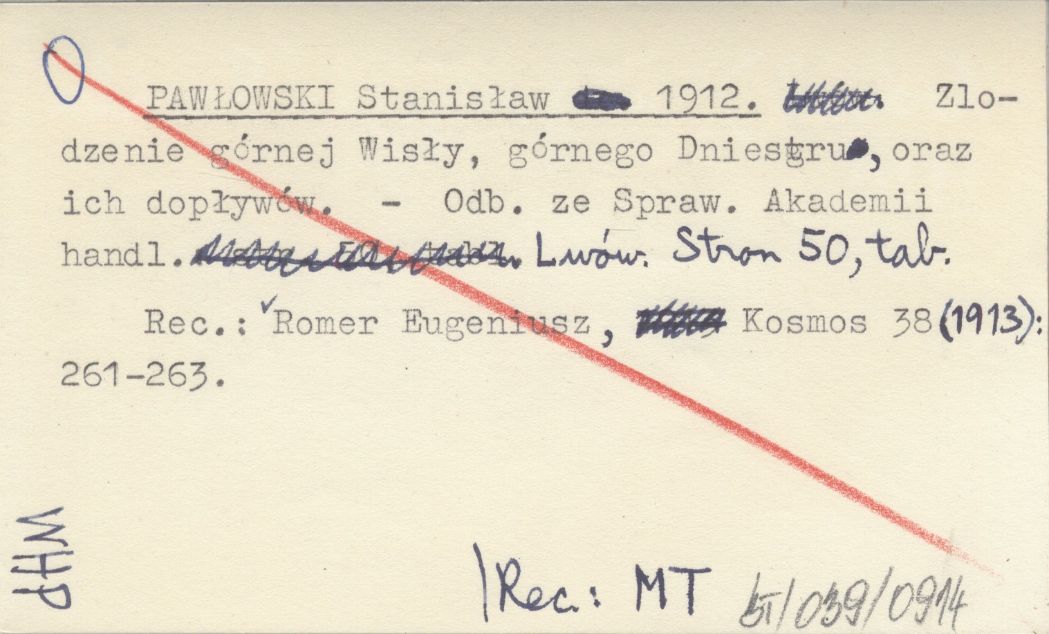 Lwów , 50 s., k. Odb. ze Sprawozdania Akademii handlowej REC: ROMER Eugeniusz, Kosmos 38 (1913): 261-263.