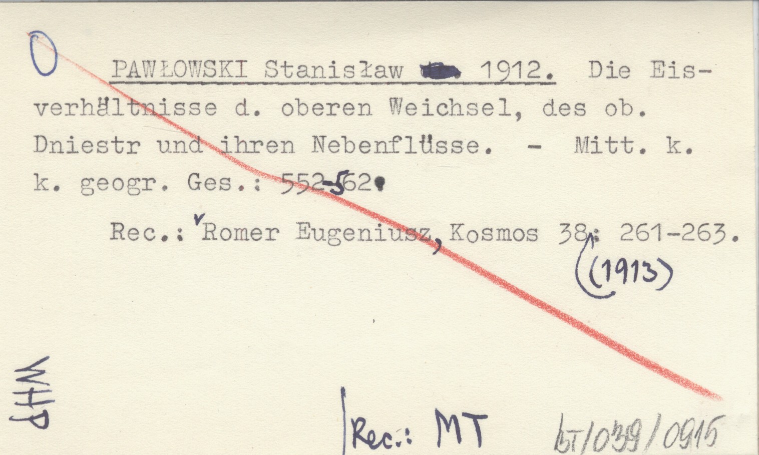 Mitteilungen der k.k. Geographischen Gesellschaft, S. 552-562. REC: ROMER Eugeniusz, Kosmos 38 (1913): 261-263.
