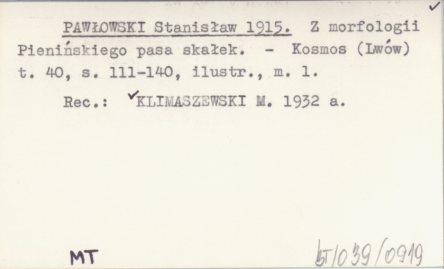 PAWŁOWSKI Stanisław 1915 Z morfologii Pienińskiego pasa skałek.