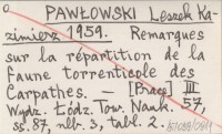PAWŁOWSKI Leszek Kazimierz 1959 Remarques sur la répartition de la faune torrenticole des Carpathes.
