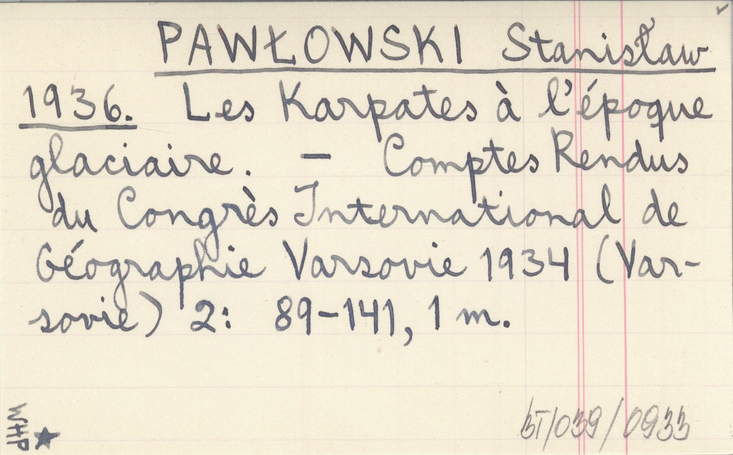 Comptes Rendus du Congrés International de Géographie Varsovie 1934 (Varsovie) , 2: 89-141, 1 mapa.