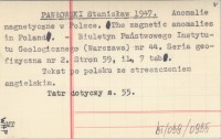 PAWŁOWSKI Stanisław 1947 Anomalie magnetyczne w Polsce. The magnetic anomalies in Poland.