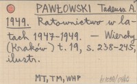 PAWŁOWSKI Tadeusz A. 1949 Ratownictwo w latach 1947-1949.