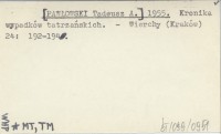 [PAWŁOWSKI Tadeusz A.] 1955 Kronika wypadków tatrzańskich.