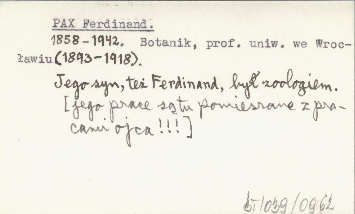1858-1942. Botanik, prof. uniwersytecki we Wrocławiu (1893-1918). Jego syn, też Ferdinand, był zoologiem. [Jego prace są tu pomieszane z pracami ojca!!!]