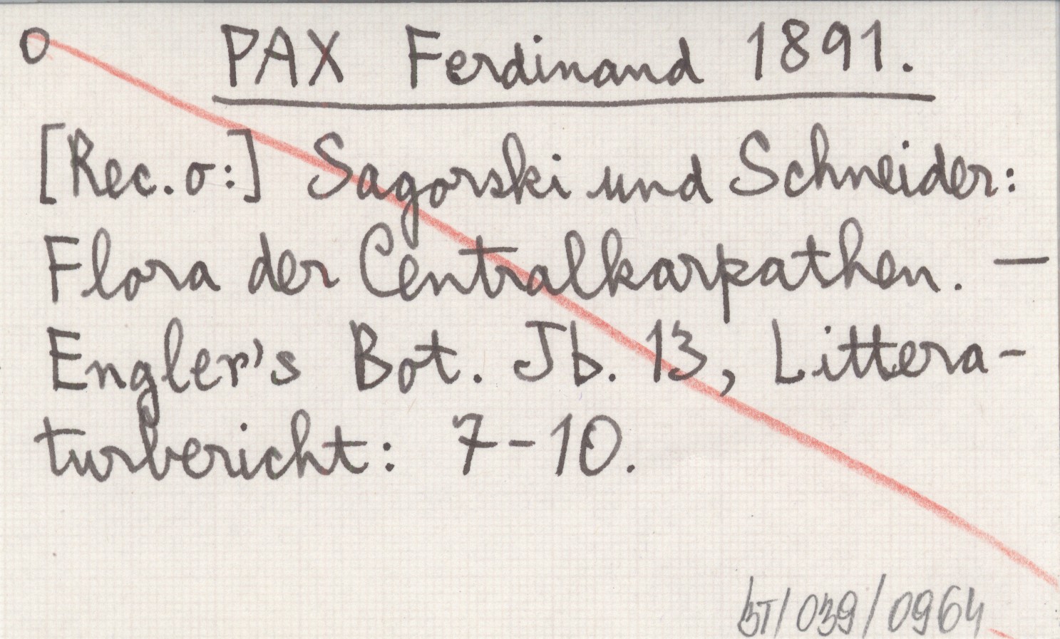 PAX Ferdinand 1891 [Rec. o:] Sagorski und Schneider: Flora der Centralkarpathen. Engler's Bot. Jb. 13.