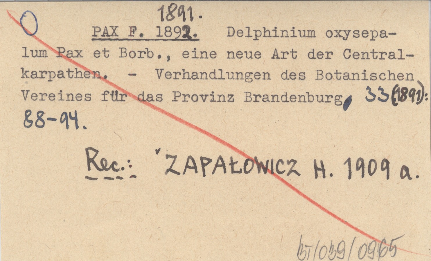 PAX F. 1891 Delphinium oxysepalum Pax et Borb., eine neue Art der Centralkarpathen.