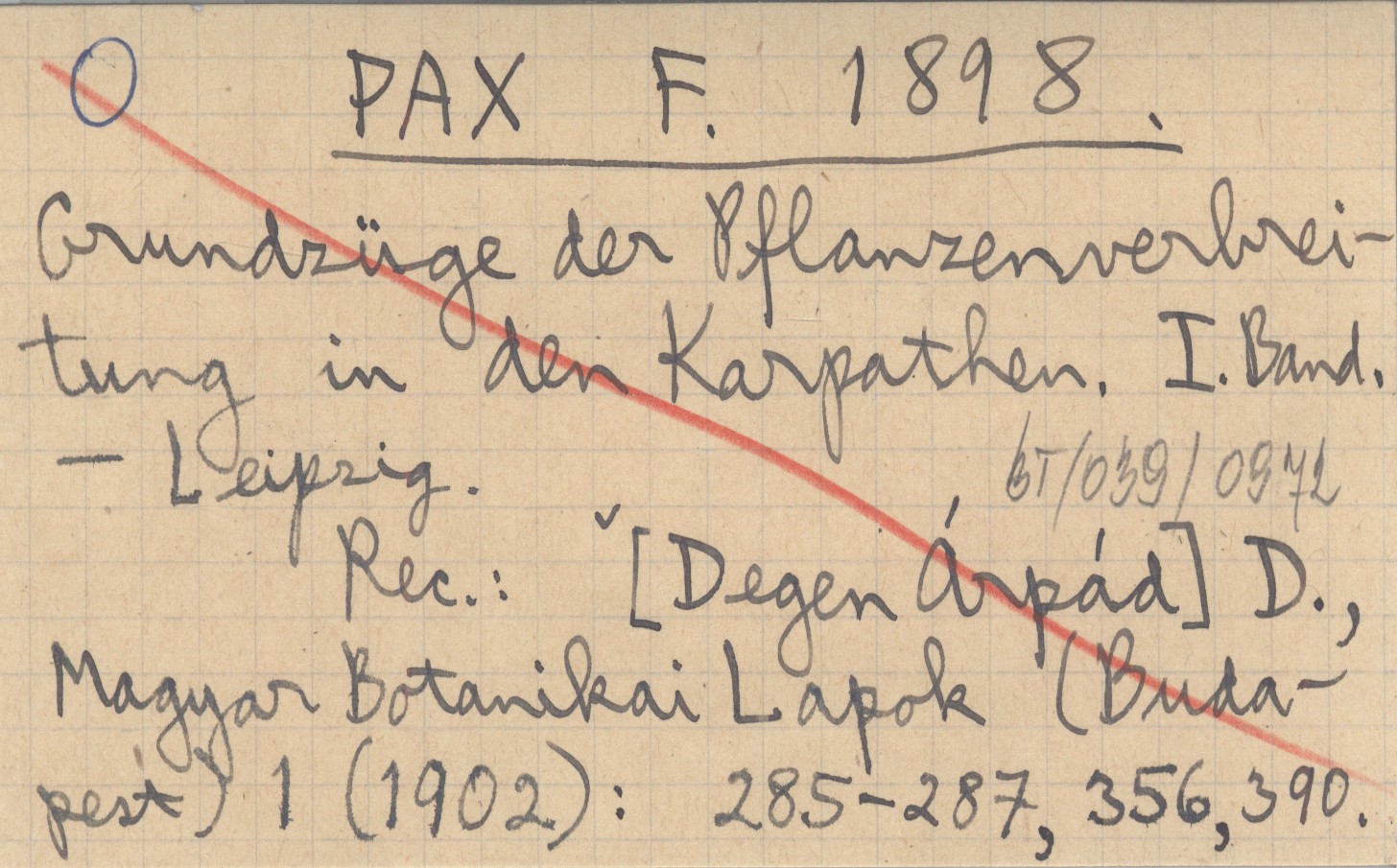 Leipzig , REC: [DEGEN Árpád] D., Magyar Bitanikai Lapok (Budapest) 1 (1902): 285-287, 356, 390.