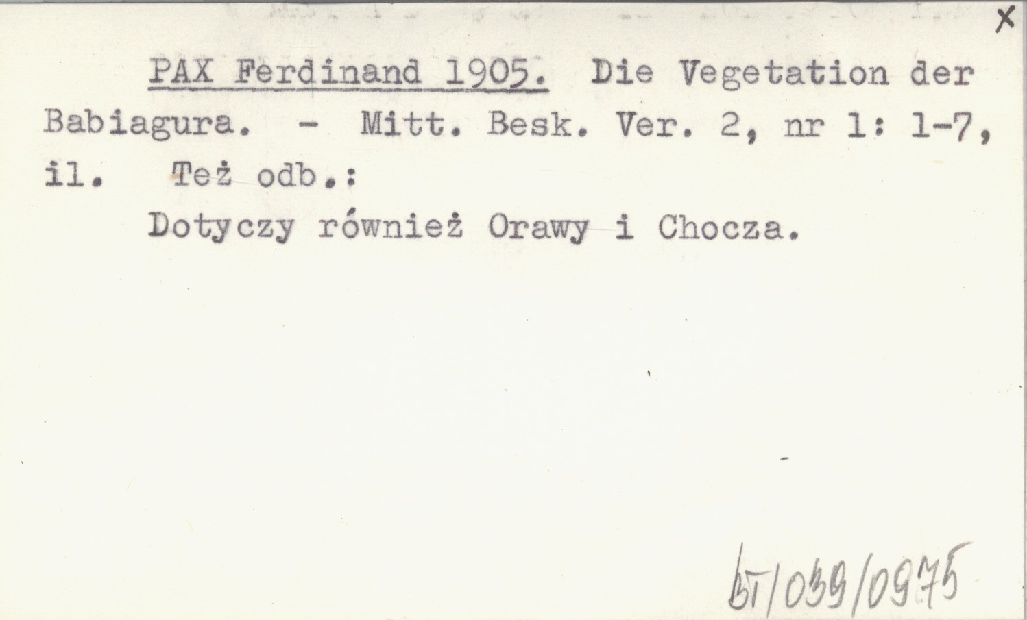 Mitteilungen des Beskidenvereines, 2, nr 1: 1-7, il. Dotyczy również Orawy i Chocza. Też odb. REC: Just's Bot. Jahresbericht 33 (1908): 469.
