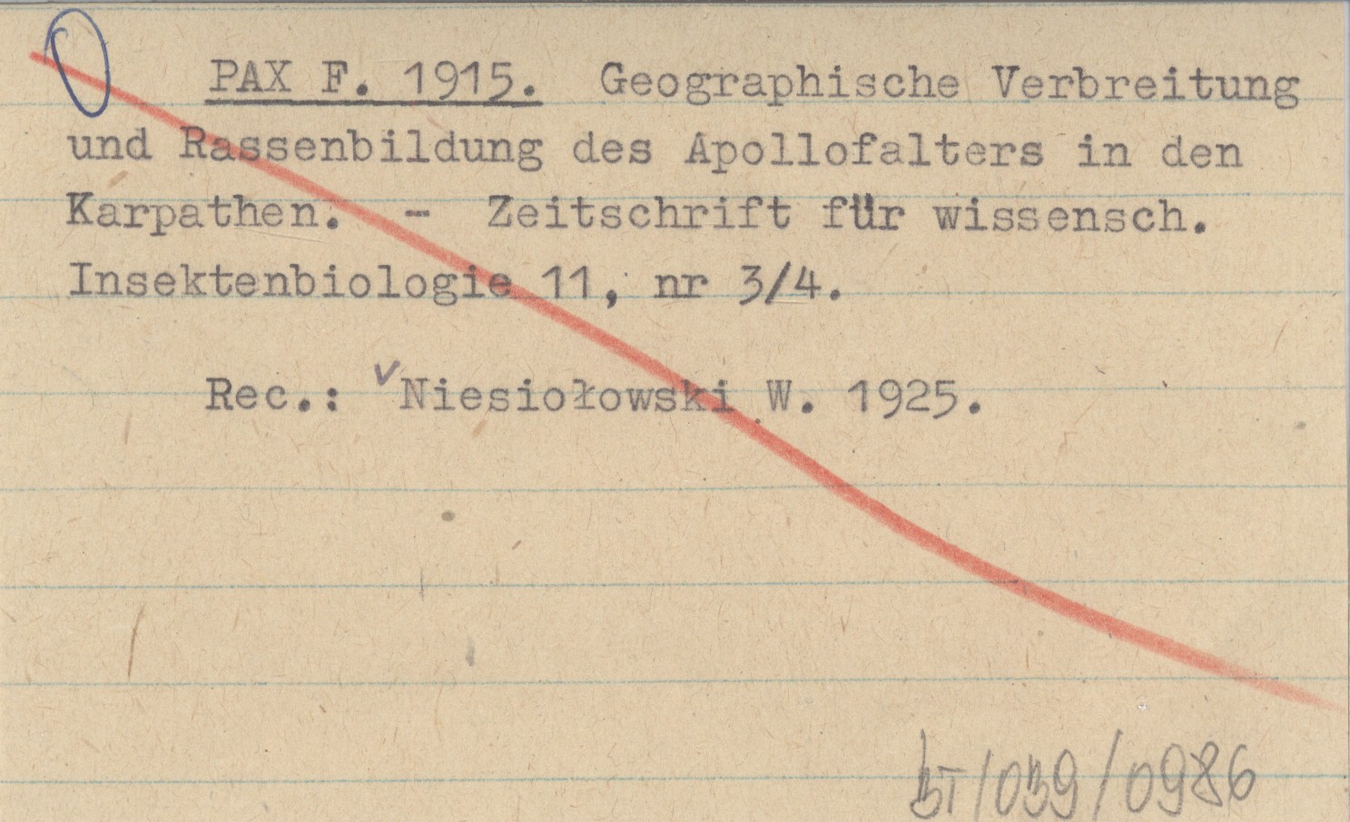 PAX F. 1915 Geographische Verbreitung und Rassenbildung des Apollofalters in den Karpathen.