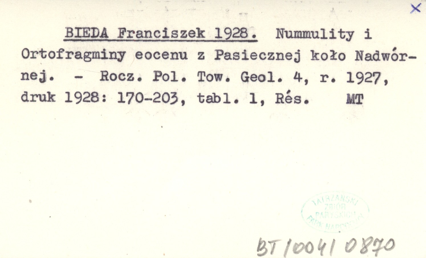 BIEDA Franciszek 1928 Nummulity i Ortofragminy eocenu z Pasiecznej koło Nadwórnej.