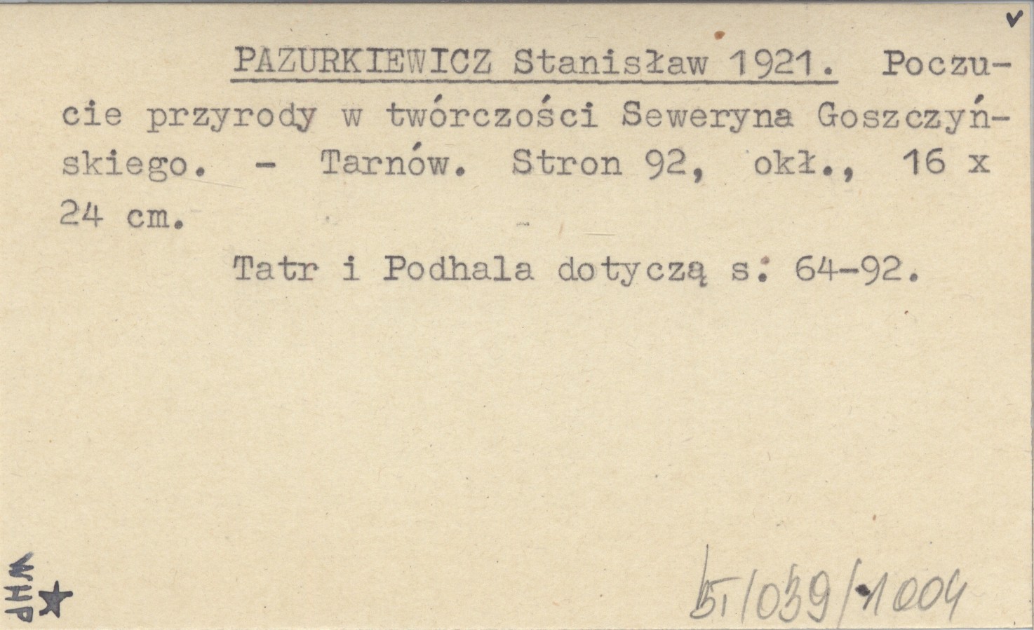 Tarnów , 92 s., okł., 16x24 cm. Tatr i Podhala dotyczą s. 64-92.