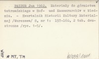 PAZDUR Jan 1960 Materiały do górnictwa tatrzańskiego w Hof- und Kammerarchiv w Wiedniu.