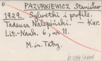PAZURKIEWICZ Stanisław 1929 Sylwetki i profile. Tadeusz Nalepiński.