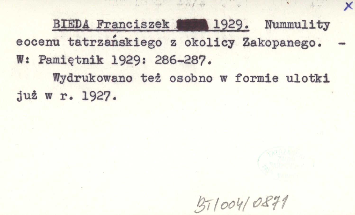 BIEDA Franciszek 1929 Nummulity eocenu tatrzańskiego z okolicy Zkopanego.