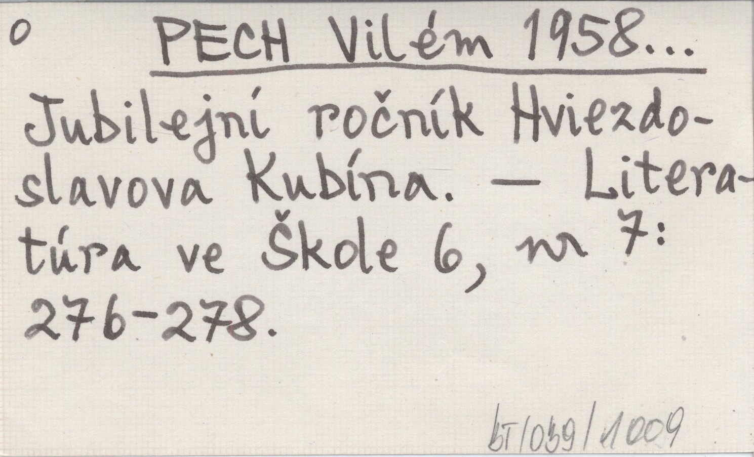 PECH Vilém 1958... Jubilejní ročník Hviezdoslavova Kubína.