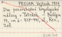 PECIAR Vojtech 1959 Dva pozoruhodné bryologické nálezy v Tatrách.