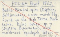 PECINA Pavel 1962 Babic Benesi sp.n. (Diptera, Biblionidae), a new march fly, found in the High Tatra Mountains. Bibio Benesi sp.n. (Diptera, Biblionidae), nová muchnice Vysokých Tater.