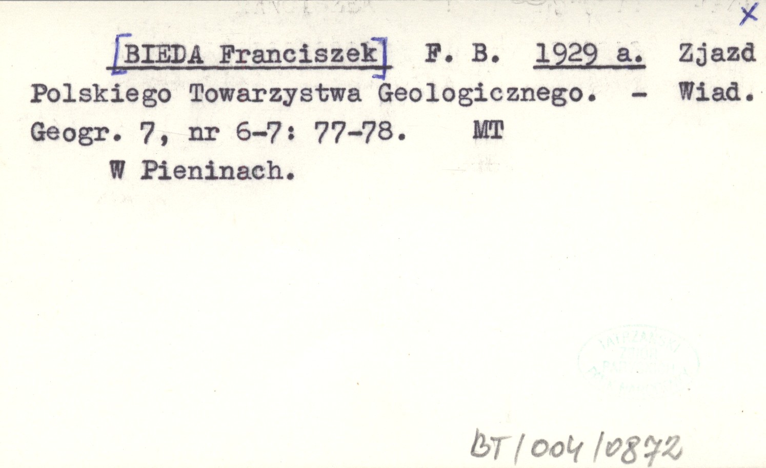 F. B. [BIEDA Franciszek] 1929 a Zjazd Polskiego Towarzystwa Geologicznego.