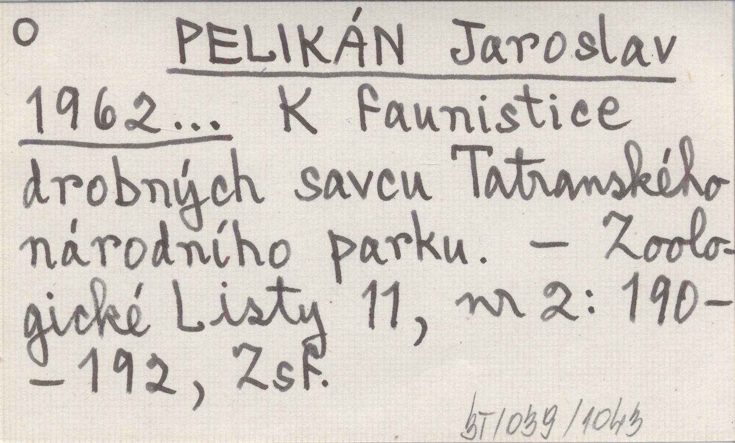 PELIKÁN Jaroslav 1962... K faunistice drobných savcu Tatranského národnícho parku.