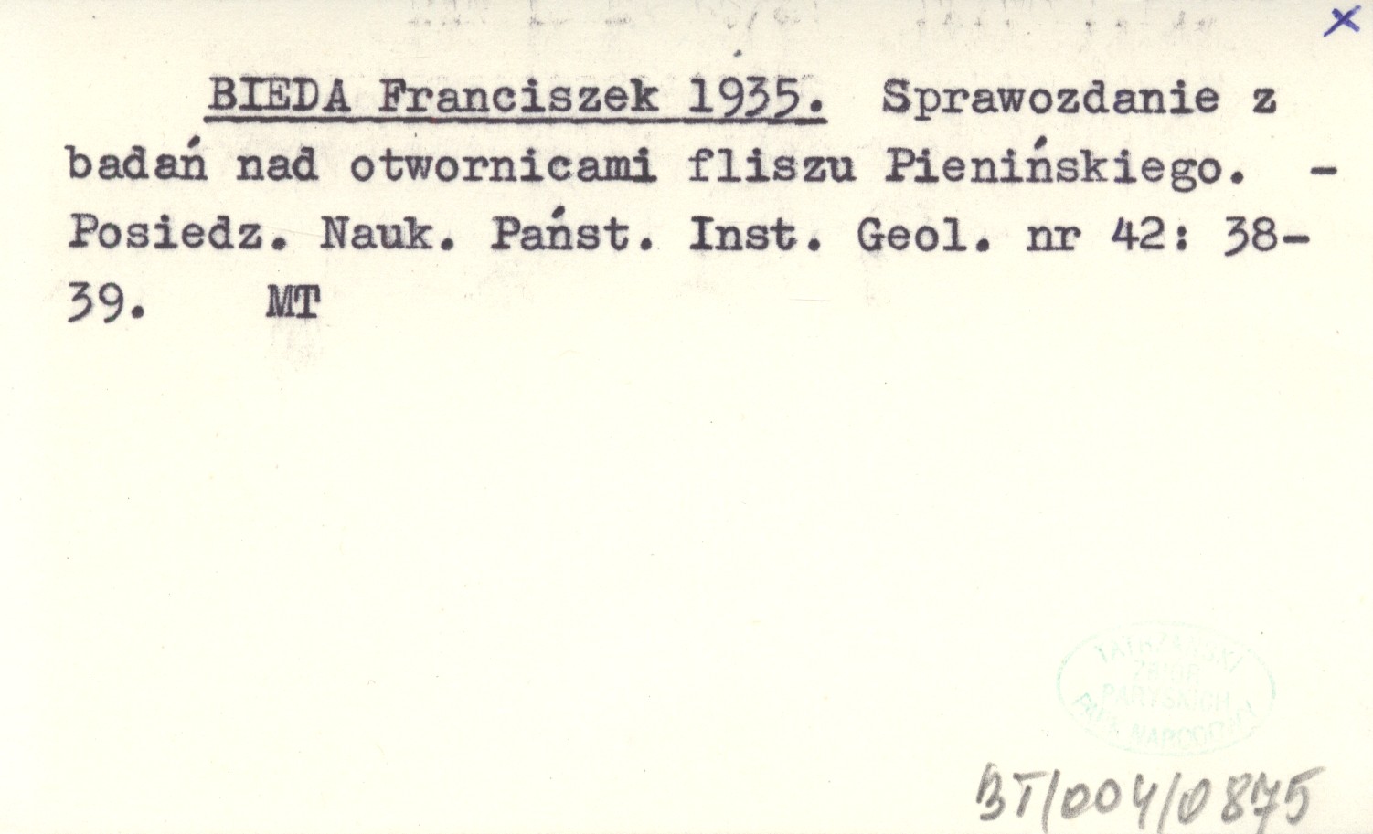 BIEDA Franciszek 1935 Sprawozdanie z badań nad otwornicami fliszu Pienińskiego.