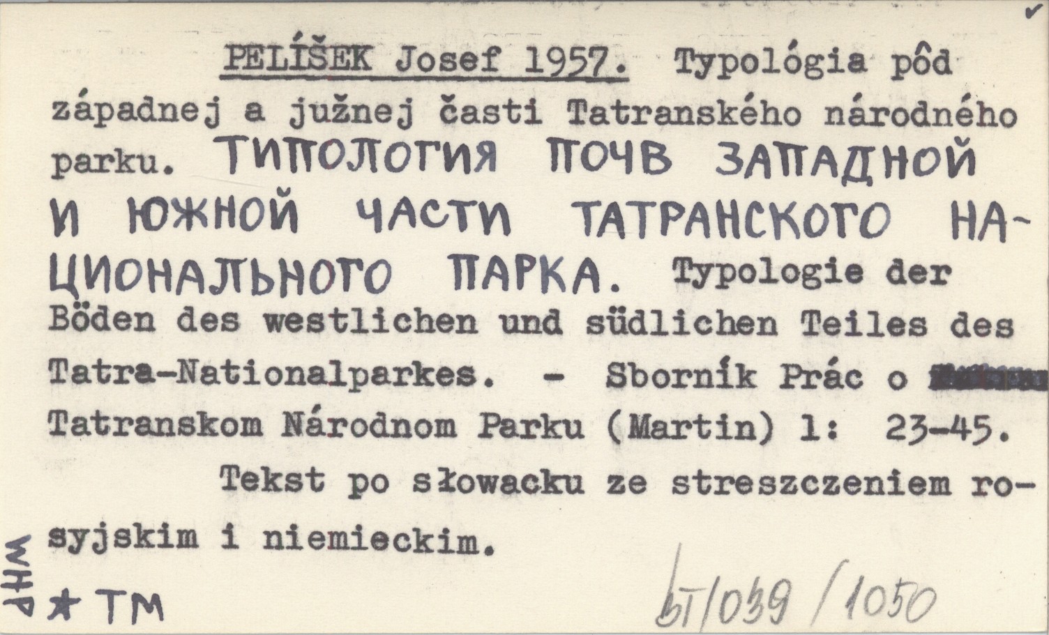 Sborník Prác o Tatranskom Národnom Parku (Martin) , 1: 23-45. Tekst po słowacku ze streszczeniem rosyjskim i niemieckim.