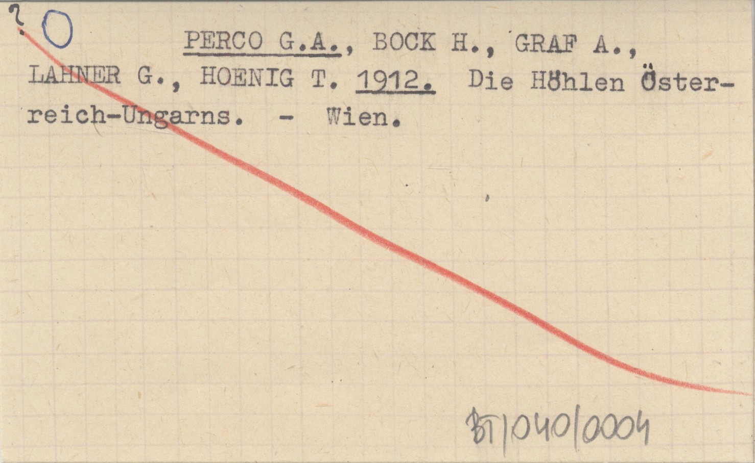 PERCO G. A. BOCK, H. ; GRAF, A. ; LAHNER, G. ; HOENIG, T. ; 1912 Die Höhlen Österreich-Ungarns.