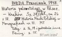 BIEDA Franciszek 1948 Historia paleontologii w Polsce.