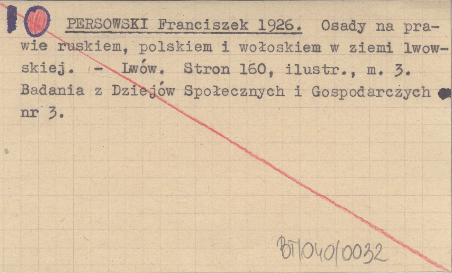 PERSOWSKI Franciszek 1926 Osady na prawie ruskiem, polskiem i wołoskiem w ziemi lwowskiej.