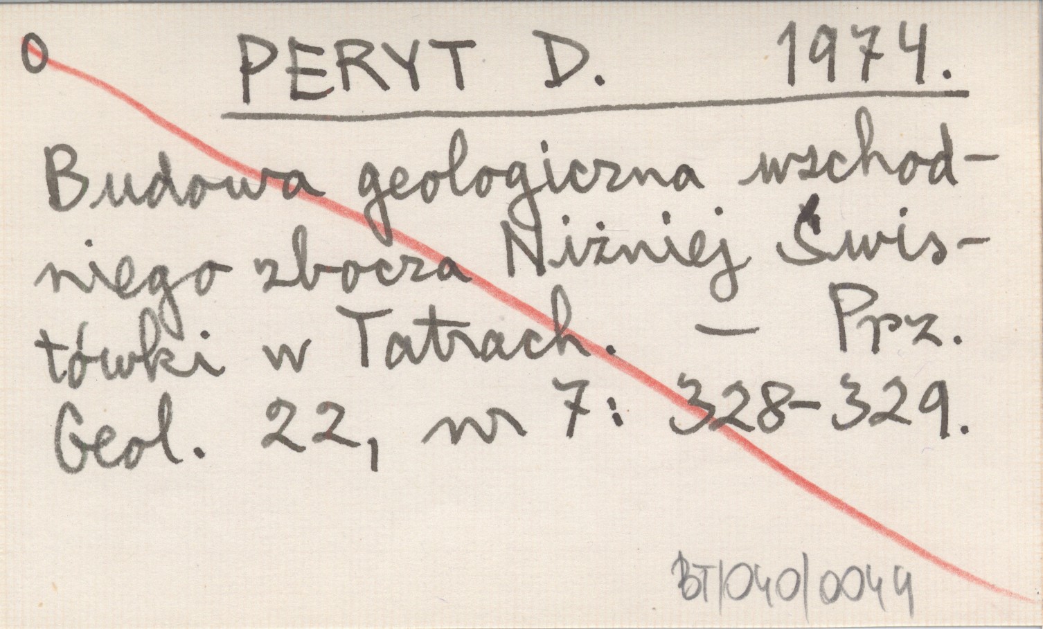 PERYT D. 1974 Budowa geologiczna wschodniego zbocza Niżniej Świstówki w Tatrach.