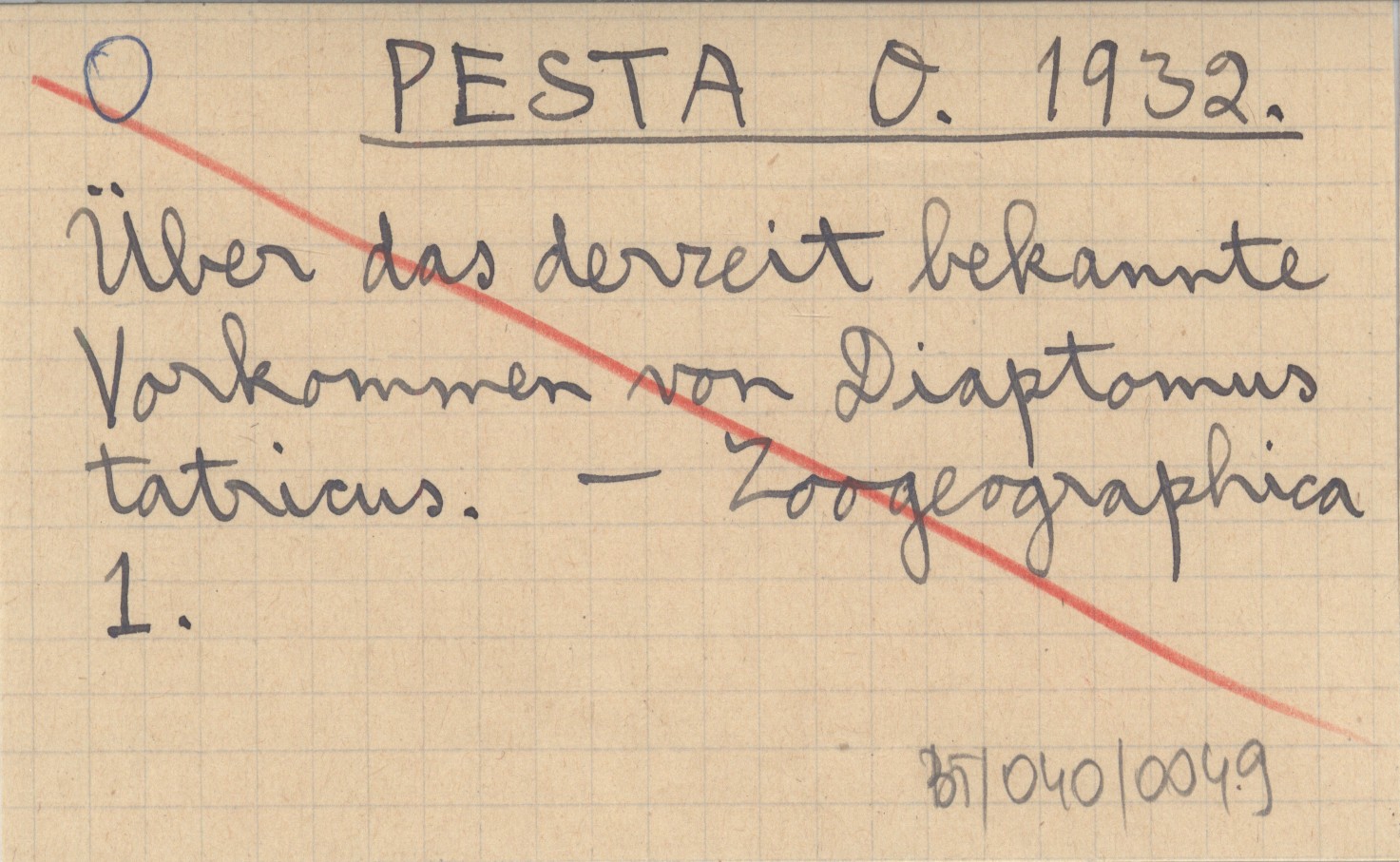 PESTA O. 1932 Über das derzeit bekannte Vorkommen von Diaptomus tatricus.