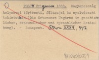 PESTY Friedrich Helységnévtára. (Ortsnamen-Lexikon. Handschriften-Abteilung der Bibliothek des Ungarischen National-Museums zu Budapest, Zahl 1114 Fol. Hung.).