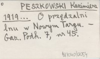 PESZKOWSKI Kazimierz 1919... O przędzalni lnu w Nowym Targu.