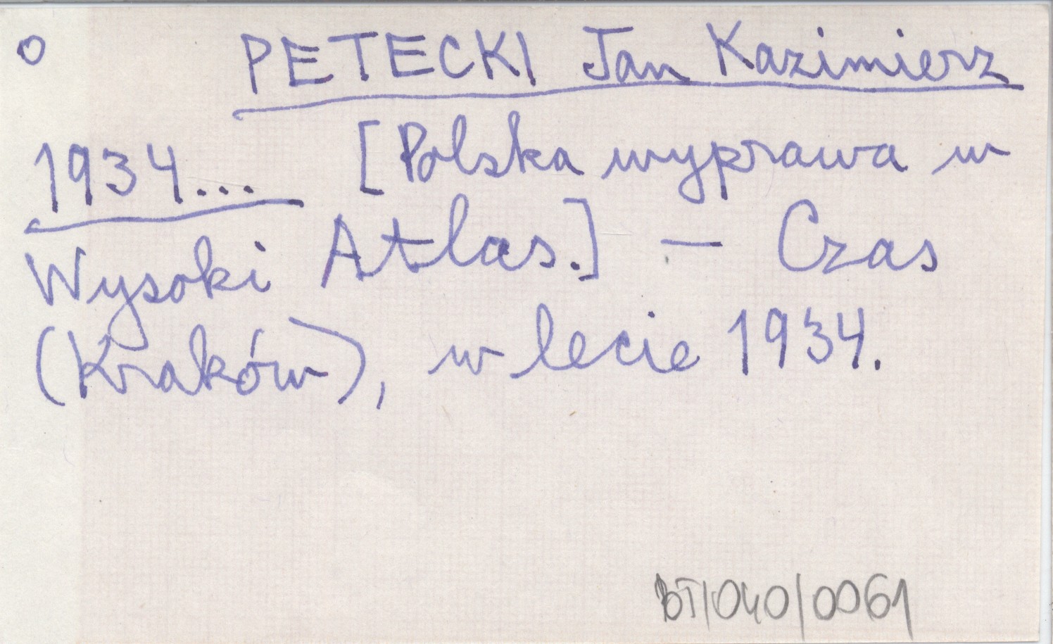 PETECKI Jan Kazimierz 1934... [Polska wyprawa w Wysoki Atlas.]
