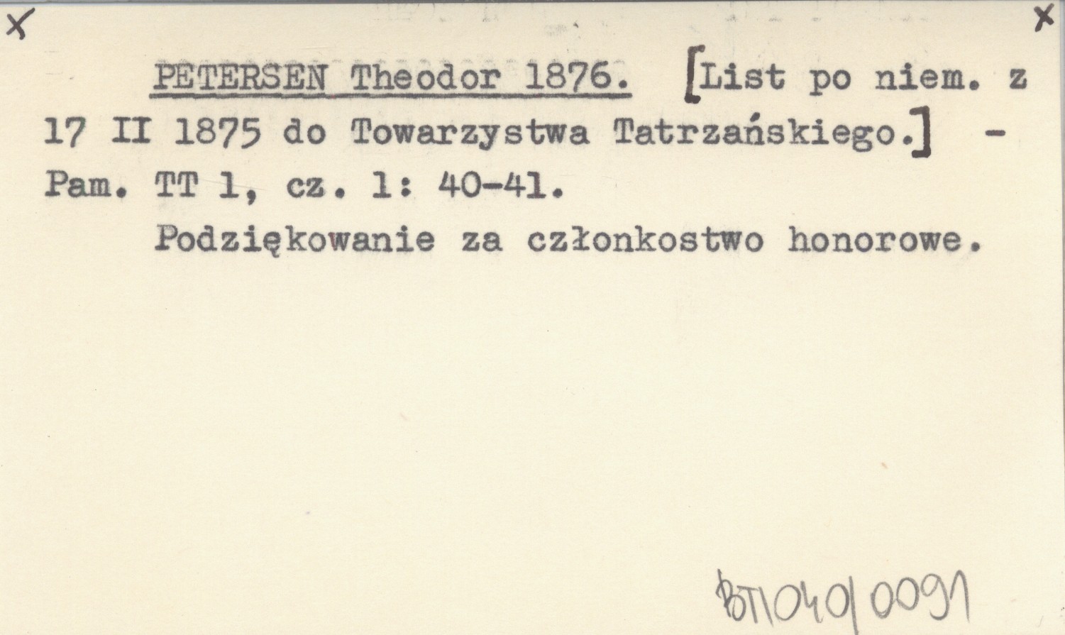 PETERSEN Theodor 1876 [List po niem. z 17 II 1875 do Towarzystwa Tatrzańskiego.]