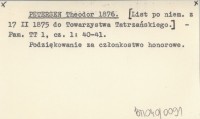 PETERSEN Theodor 1876 [List po niem. z 17 II 1875 do Towarzystwa Tatrzańskiego.]