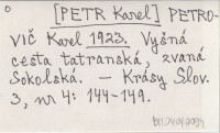 PETROVIČ Karel [PETR Karel] 1923 Vyšná cesta tatranská, zvaná Sokolská.