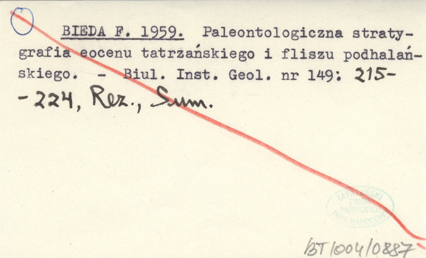 BIEDA F. 1959 Paleontologiczna stratygrafia eocenu tatrzańskiego i fliszu podhalańskiego.