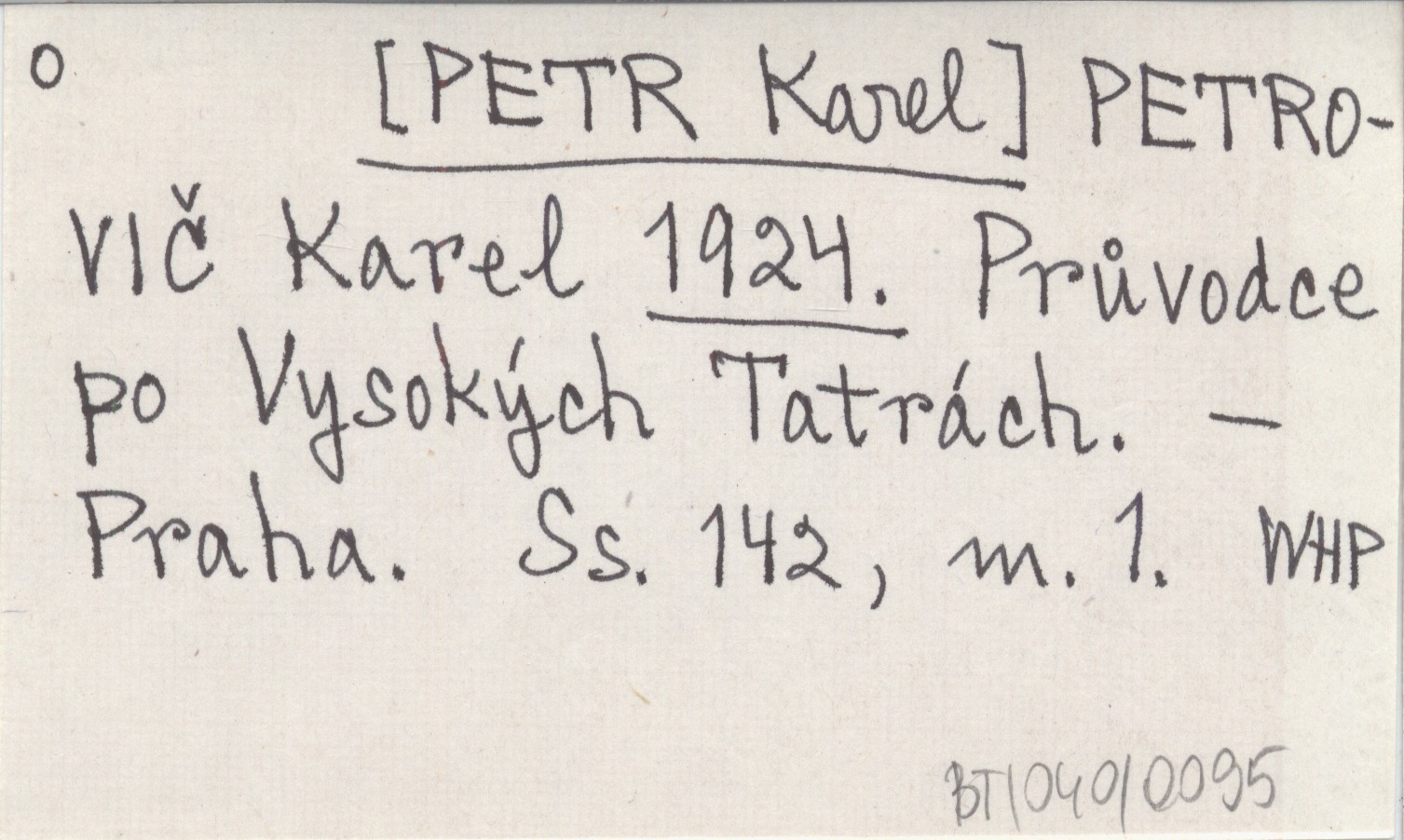 PETROVIČ Karel [PETR Karel] 1924 Průvodce po Vysokých Tatrách.
