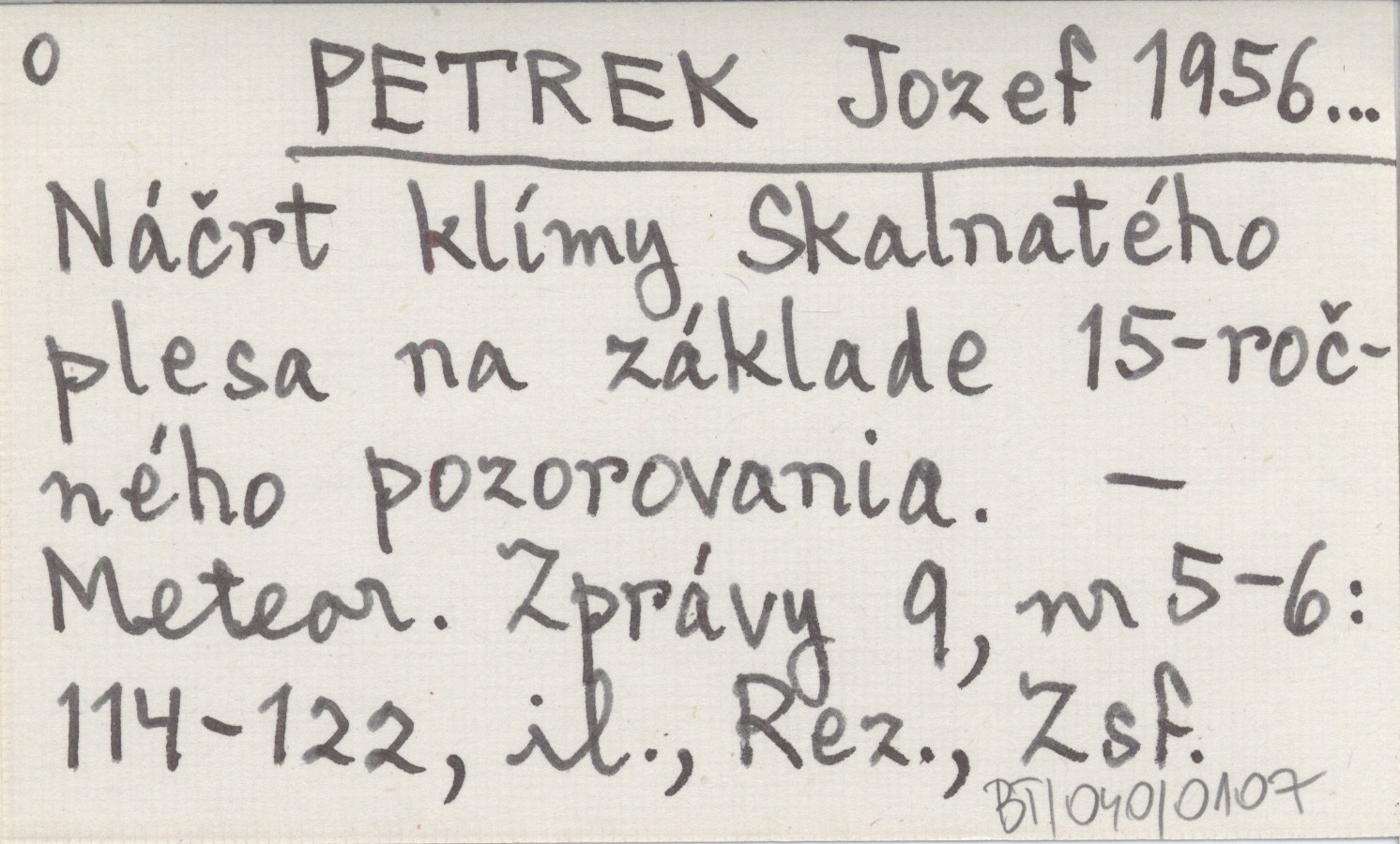 PETREK Jozef 1956... Náčrt klímy Skalnatého plesa na základe 15-ročného pozorovania.