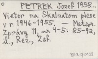 PETREK Jozef 1958... Vietor na Skalnatom plese v r. 1946-1955.